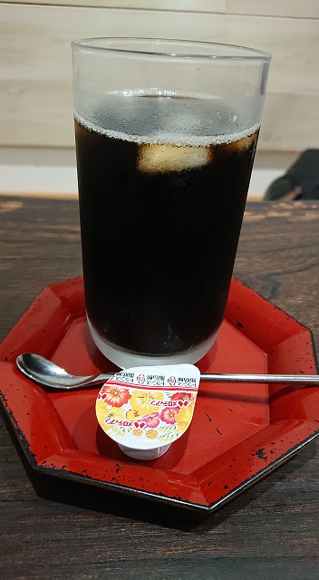 珍しくアイスコーヒーにしたけど、、、、驚くことに甘いコーヒーだった(シロップ入)