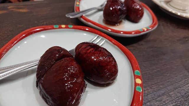 デザートはね、渋皮栗の甘露煮だったよ、大きくて甘くて美味しかったよ