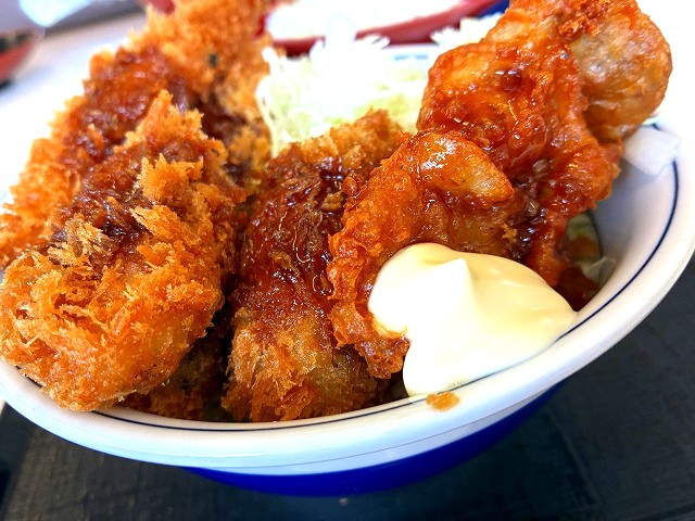 牡蠣✖唐揚げ2個✖鯖✖海老 娘と唐揚げ1個とトンカツ1切をトレードしました