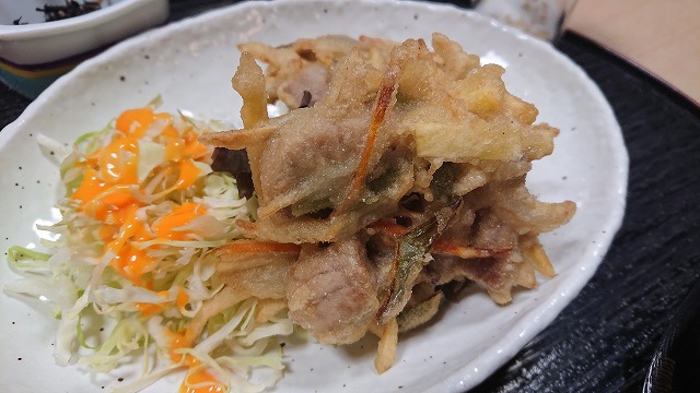 お友達は魚の日替わり定食で、今日はかき揚げだよーー(^_-)-☆