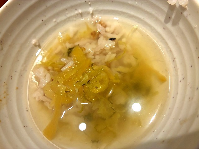 お漬物とお出汁があるので、最後のご飯にかけていただくとおいしゅうございます