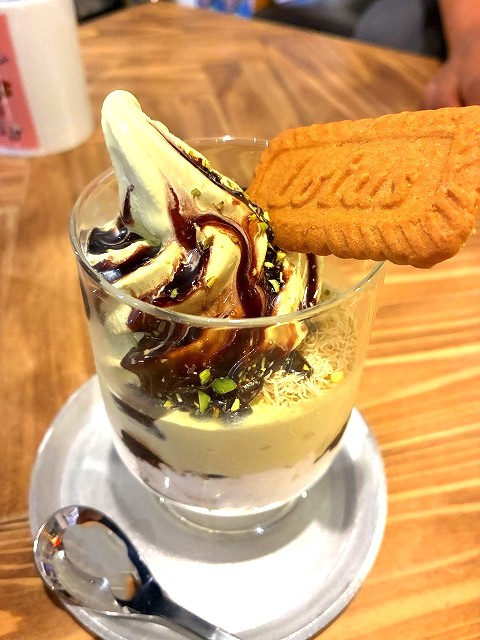 ピスタチオのソフトクリームがまた美味しいのよ! ザグザグの細麺も最高