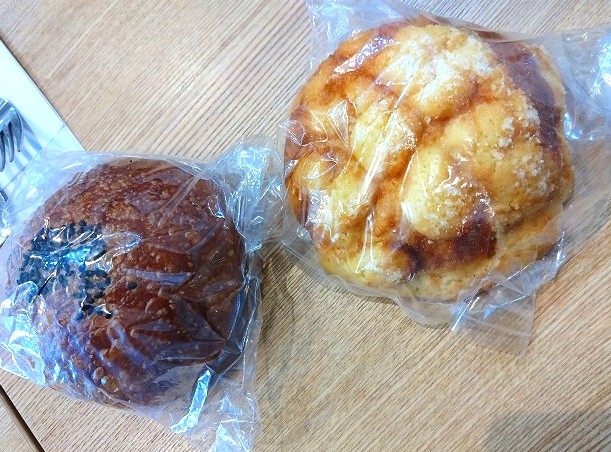 左はKさんのあんぱん、右はokarieのメロンパン(帰ってから娘と半分こしていただきました🍈)
