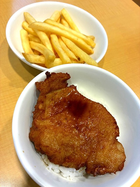 きたよーーーーー(^^♪ ちょい盛りポテトフライとミニたれカツ丼