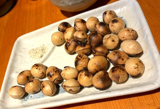 『炭火焼鳥と水炊き 五郎一』炒り銀杏と串盛り