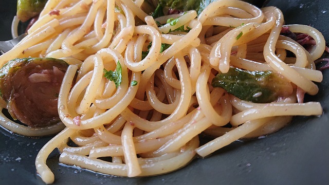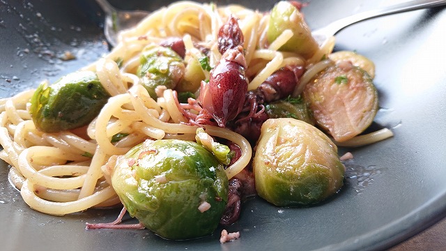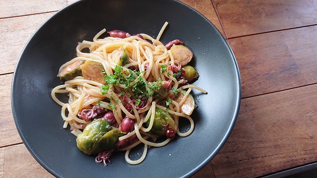 ホタルイカと芽キャベツのペペロンチーノ(^^♪