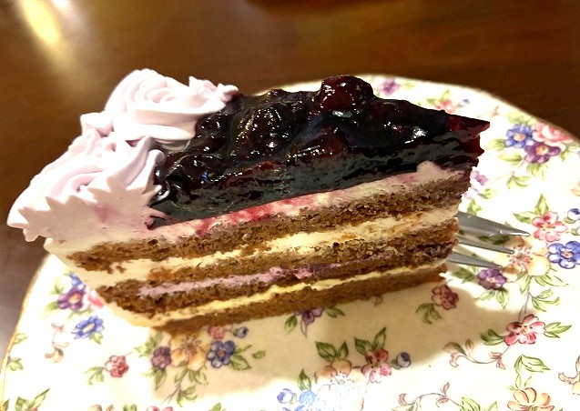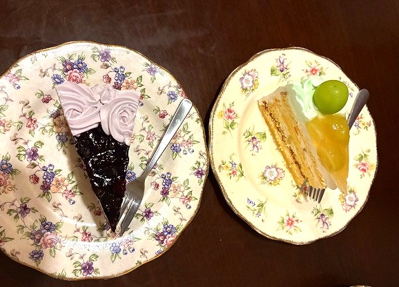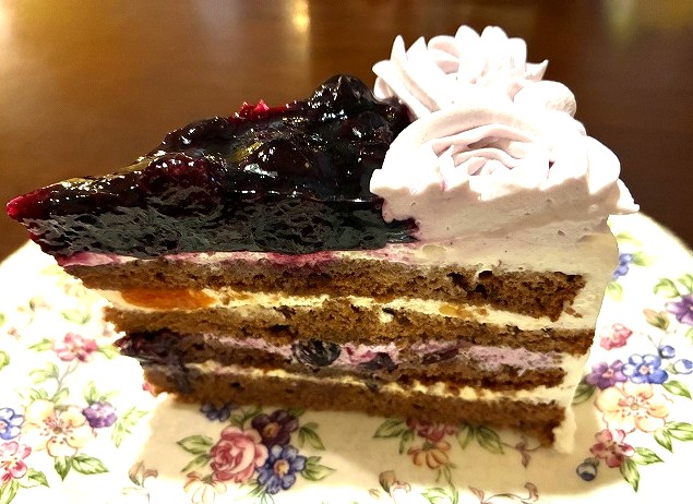 ケーキがね、見えにくいけど、桃とブルーベリーとマスカット、迷うパターン💦