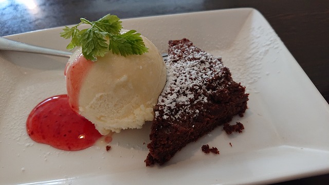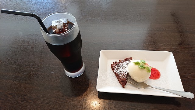 ドリンクはアイスコーヒー、デザートはガトーショコラ🎂