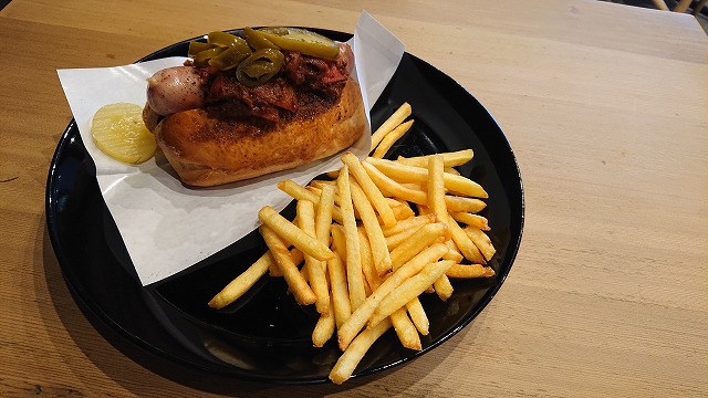 メッチャ辛いけど、美味しい!てか、バンズも主役! ソーセージの皮がかたくてちょっと食べづらかったな💦