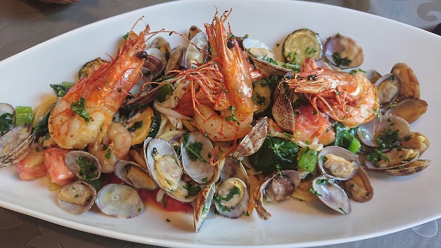 こちらはお友達の①番のスパゲッティーです🍝 有頭海老、白魚、あさり、