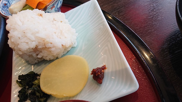そばの実おにぎり🍙 ソバ味噌、香の物も付いてます