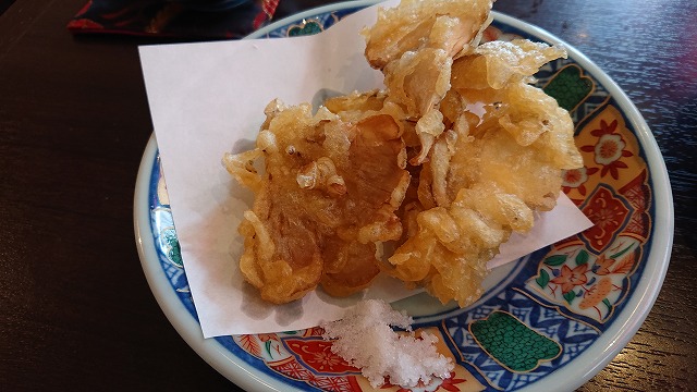 少ししてから、揚げたての舞茸天麩羅が来ました(アツアツ)