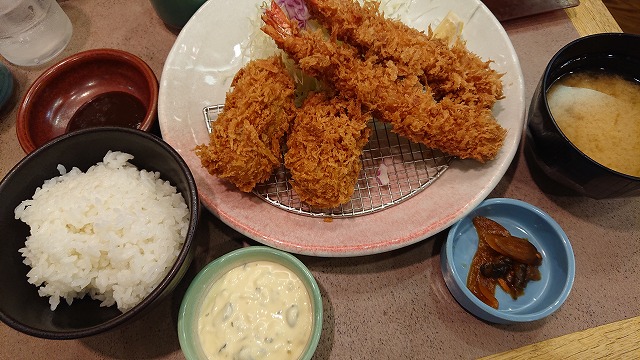 とんかつは苦手なので、海老フライコロッケ定食🦐