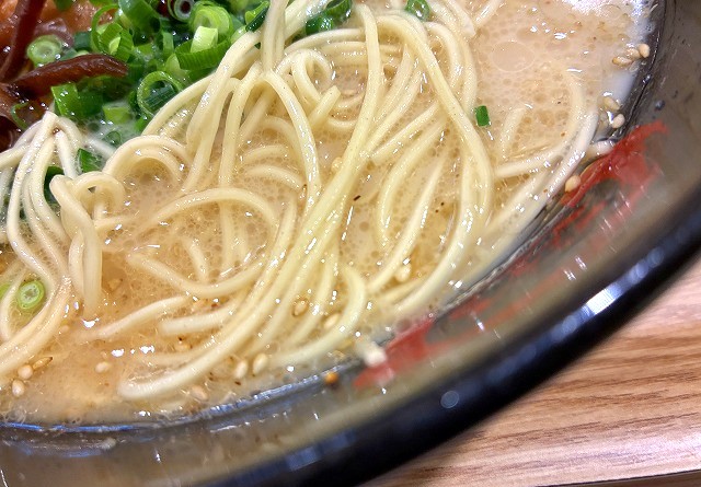 麺は小麦の細麺、娘はこれじゃなきゃラーメンは食べないというほどで、最初にお店の方に麺を聞いてました👂