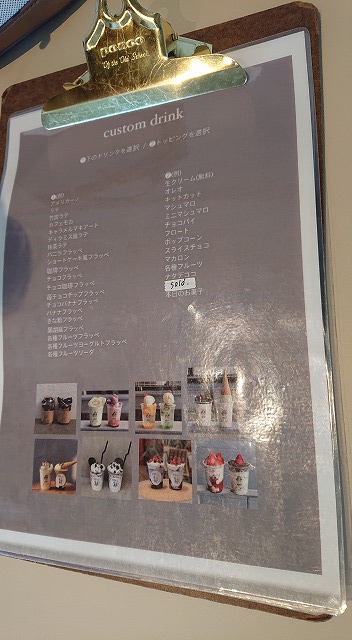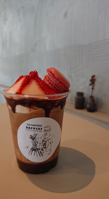 okarieは、ティラミス風ラテベースで、イチゴとマカロンをトッピング