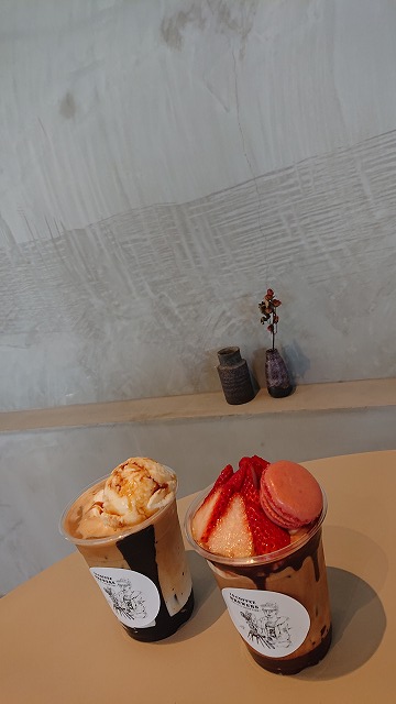 お友達は、炭焼ラテベースで、生クリームとアイスをトッピング