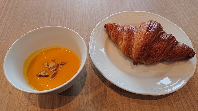 まずはかぼちゃのスープ🎃とクロワッサン(激ウマ)