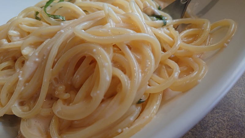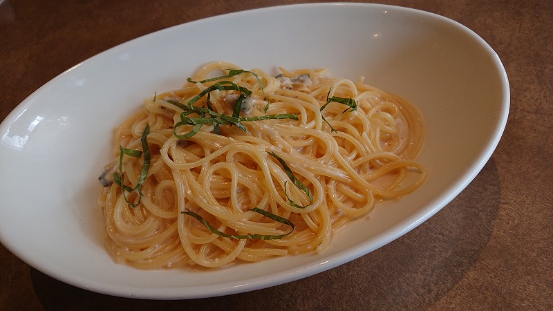 店長のおすすめの、明太子とあさりのクリームソース、メッチャおいしかった!