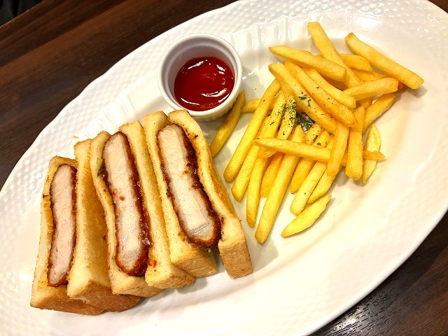 はーい、娘の大好き、厚切りカツサンド&ポテト