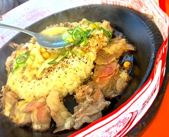 2人とも、ビーフペッパーライスのSサイズにチーズトッピング