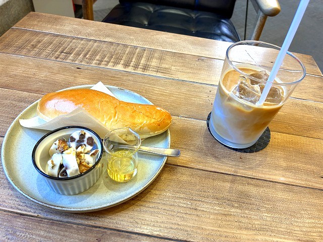 レーズンコッペとアイスカフェラテ