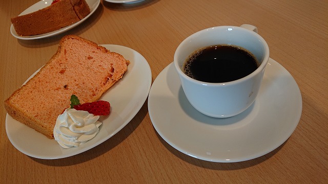 桜のシフォンケーキ🌸とデミコーヒーをいただきました☕