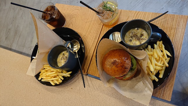 SHIRO BURGERのセット、ポテトかスープが選べるけど、どちらも付けた(笑)