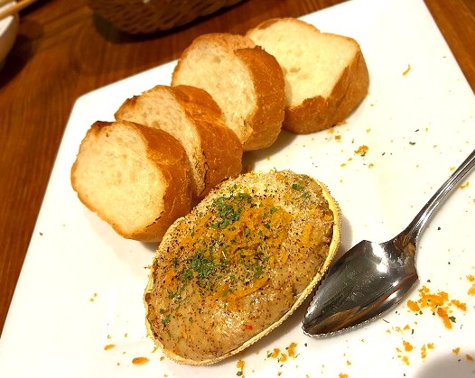 セコガニのグラタン カラスミ風味パン粉焼き✨ もうみんな一口ずつですね