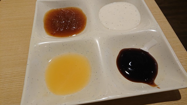ソースもいろいろあるから、楽しいよ、黄色はマンゴーソースだって(*’ω’*)