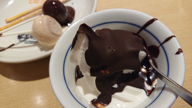 ソフトクリームも、チョコファウンテンのチョコをかけて、パリパリに(^^♪これ好き