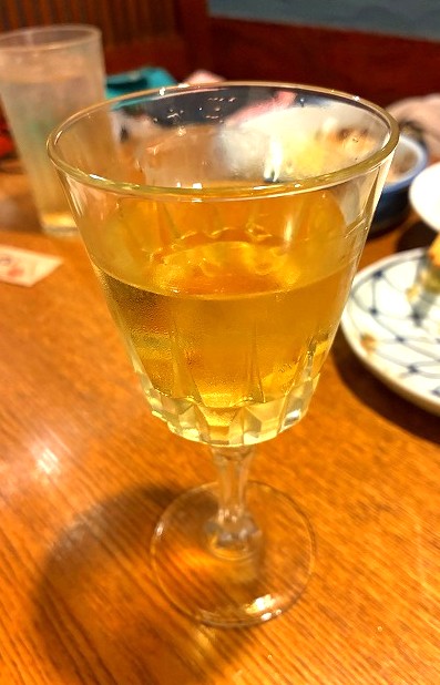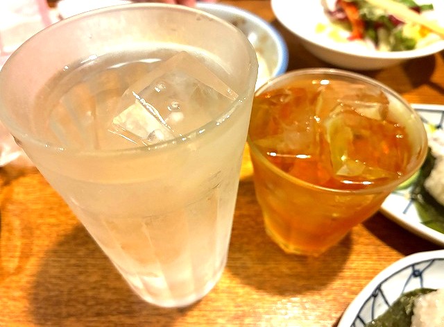 これ、okarieのじゃないけど、梅酒ロック、お水も付いてきた