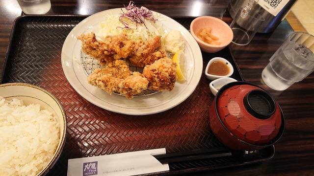 娘の注文した、香味唐揚げ定食🐔 「香味とは辛いの?」と聞いてたけど、辛くはないぞ。