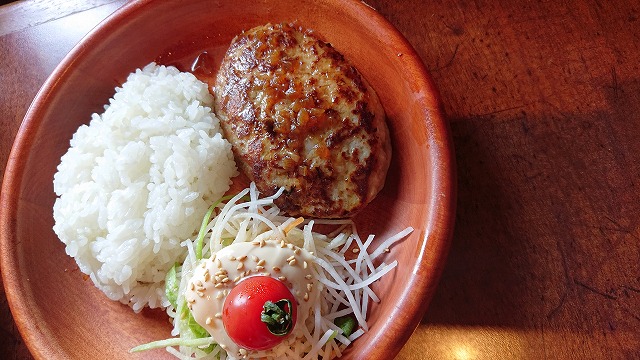 二人ともハンバーグにしたよ、okarieはトーストです🍞