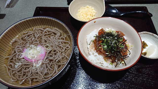 Sさんは、りゅうきゅう丼とかけそばのセット