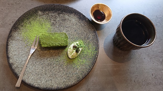 okarieチョイスの抹茶のテリーヌとコーヒー