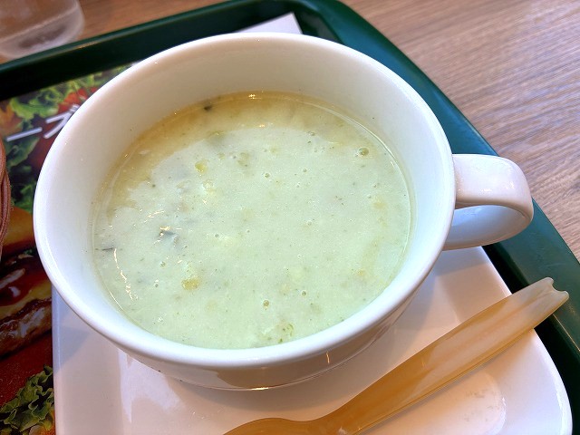 ブロッコリーとじゃがいものポタージュ じゃがいもがちょっと冷凍した後の食感みたいな感じだった(笑)※表現ムズ