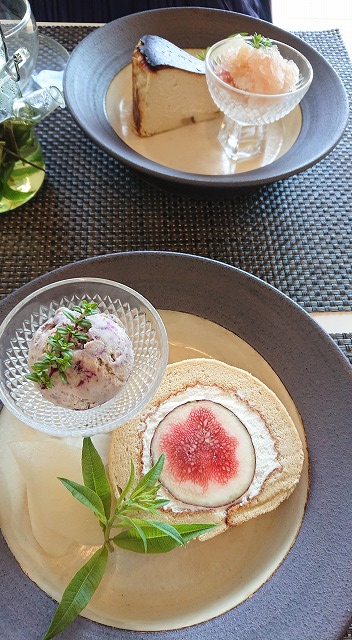 okarieは、いちぢくのロールケーキと、自家製ブルーベリーアイス(激ウマ)