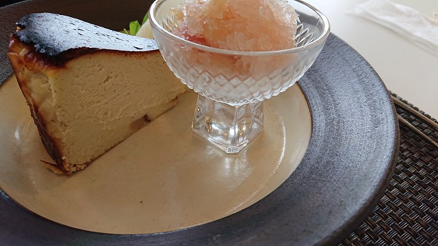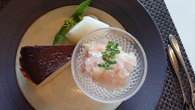 お友達は、栗のチーズケーキと、桃のグラニテ🍑