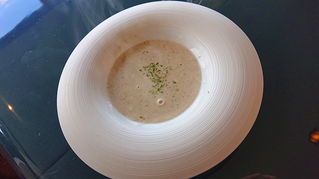 Cセットにしたので、スープがきました きのこのスープです🍄 ちょっと苦めかな