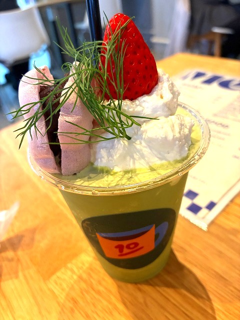 okarieは、春のフラッペ🌸 桜餅風最中と抹茶ラテが美味しいっっっっ