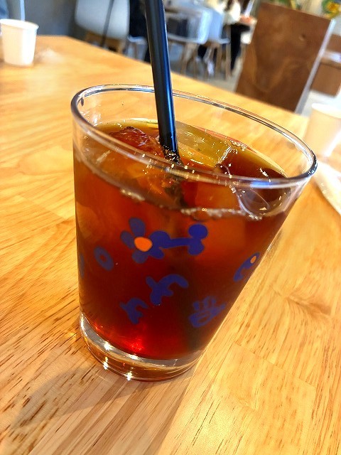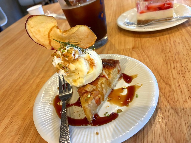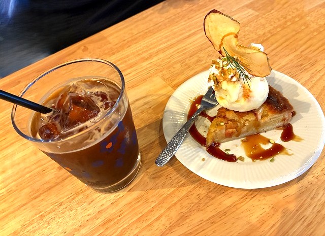 Mちゃんは、アイスコーヒーと、アップルのケーキ🍎