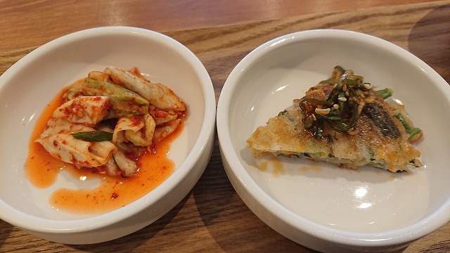 ちょっと甘めのキムチとか、チヂミも付いてるから嬉しい💛
