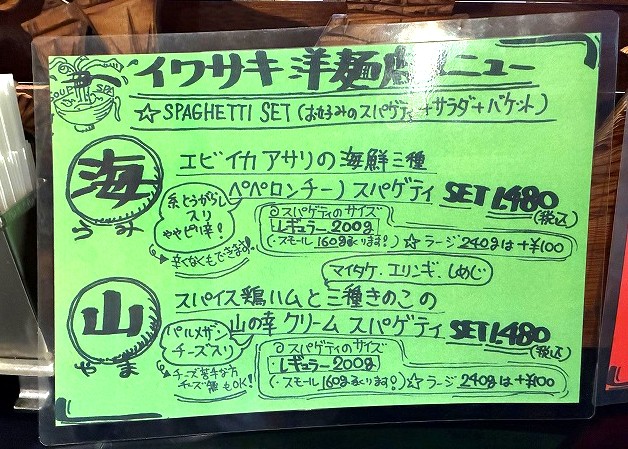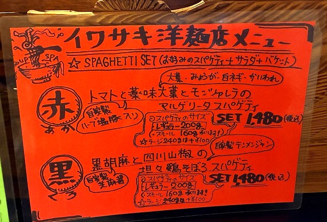 メニューは4種類のスープパスタ、今月のおすすめが2種類ある…らしいけど、知らなくてこの4種類から選んだ(^^♪