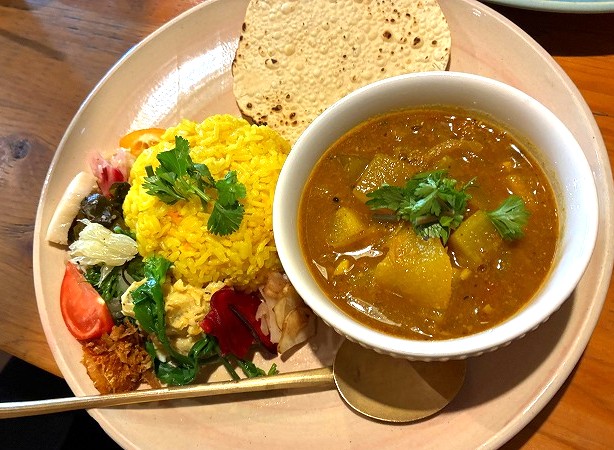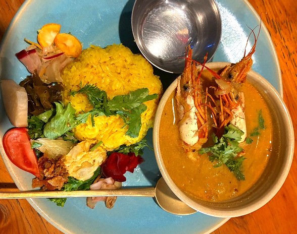 全然辛いとかないデス、辛くないと言ったらウソか、ピリ辛くらいです スープカレーみたいにサラサラ