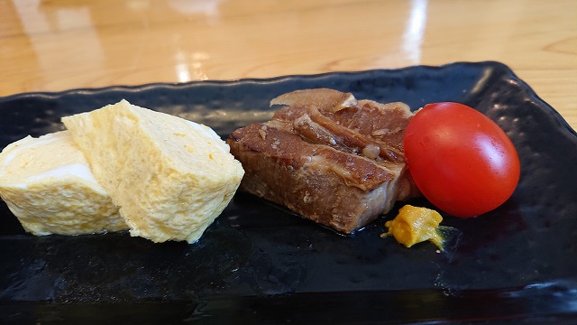 豚の角煮、だし巻き卵、レンコンの挟み焼き、大好きな肝ちゃん