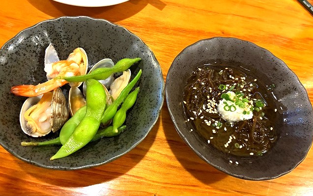 お通し来たよ!   2人で、2つとも違うものが来たよ、嬉しい(^^♪
