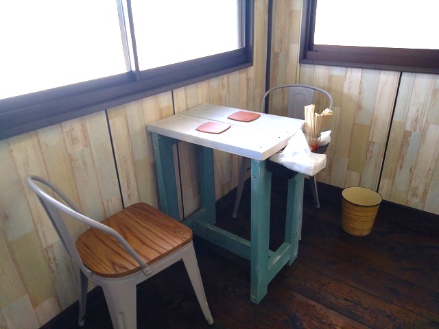 テーブル席も一つだけありました(ここに座ったよ) あとは、お外にもイートイン席あるよ