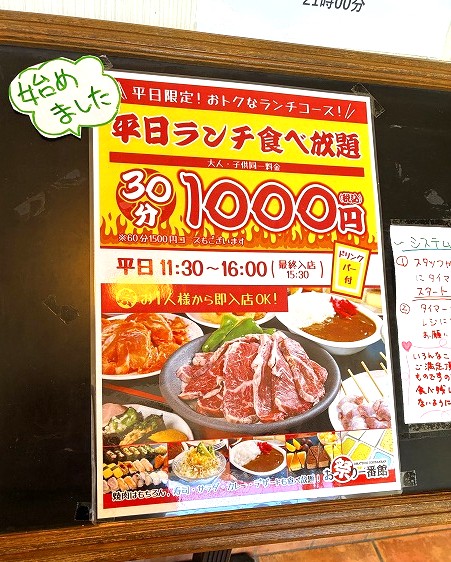 でも平日ランチ1,000円食べ放題というのがありました! すごいね、30分だって(笑)