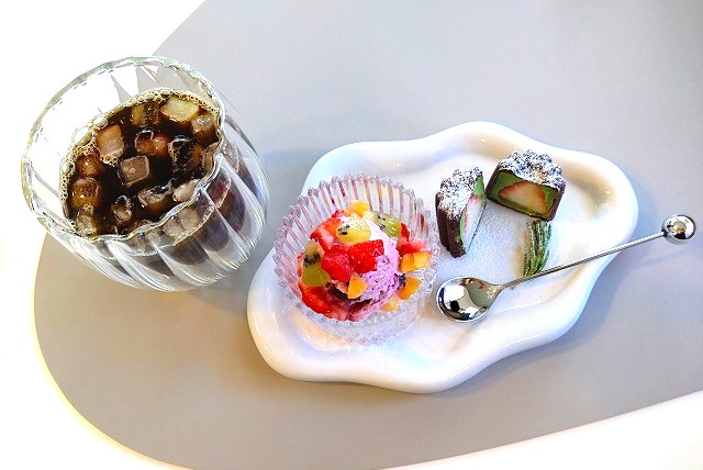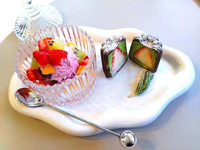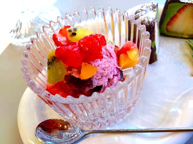 蓋開けると、フレッシュフルーツと自家製アイス🍨