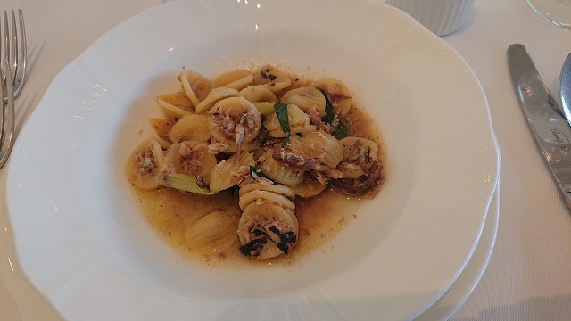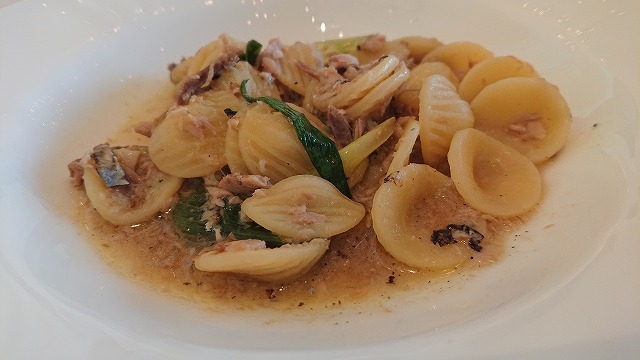 パスタは、秋刀魚と九条ネギのオレキエッテ